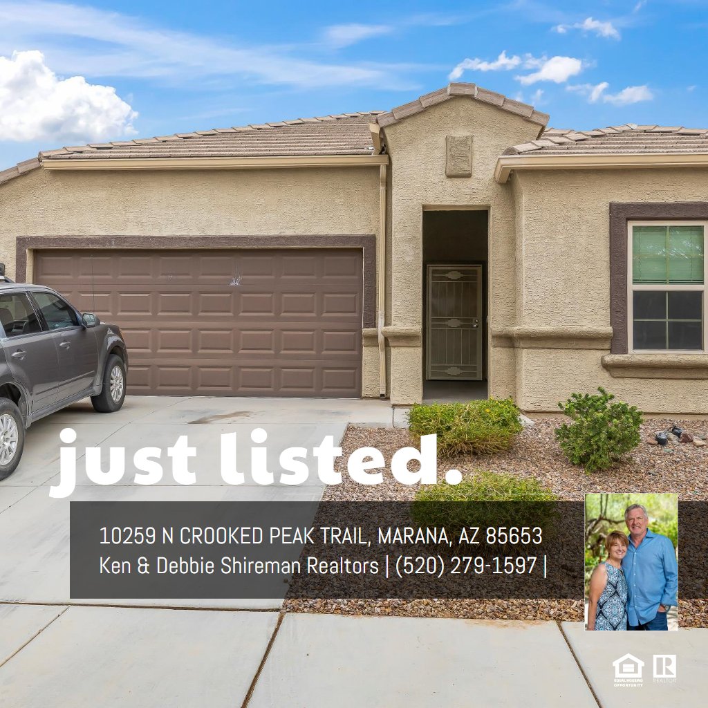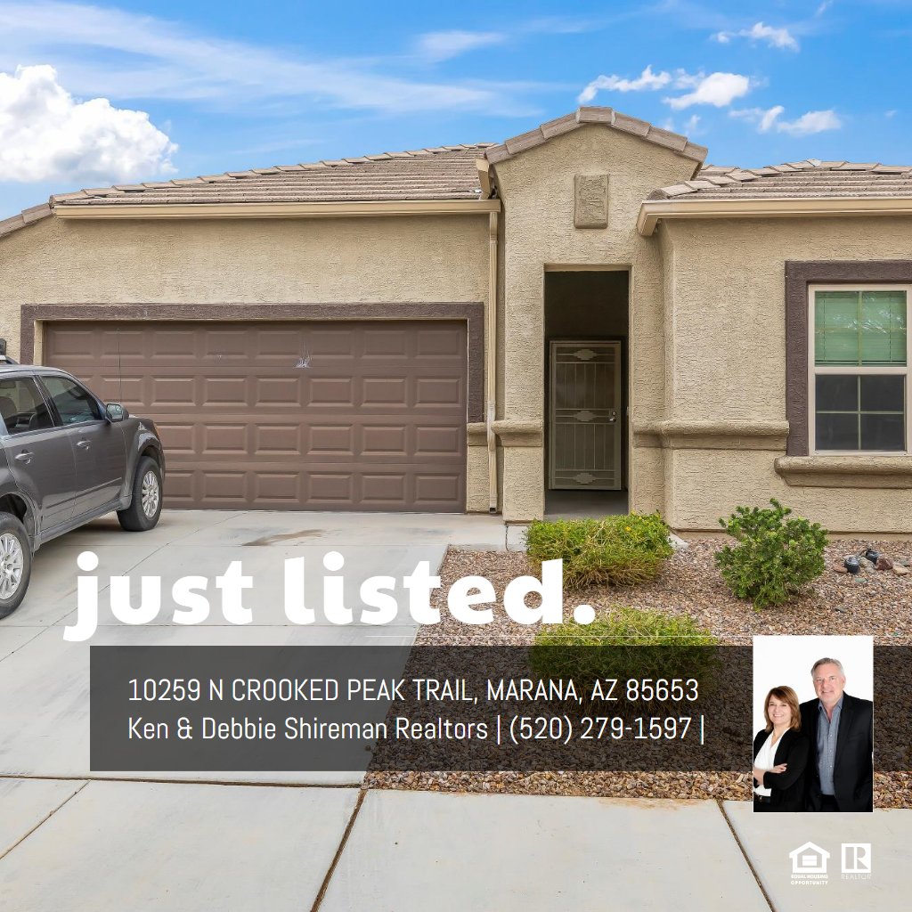 This property offers a VA assumable loan at 2.5%. Featuring four bedrooms and two bathrooms with a split floor plan, it is situated within the Saguaro Bloom Community, which provides residents with numerous amenities including a clubhouse and swimming pools. The backyard is landscaped and includes a pergola, providing an inviting space for relaxation. The home is equipped with financed solar panels for reduced electricity costs, ADT Security system wiring, reverse osmosis water purification, and a comprehensive whole-house water filtration system.