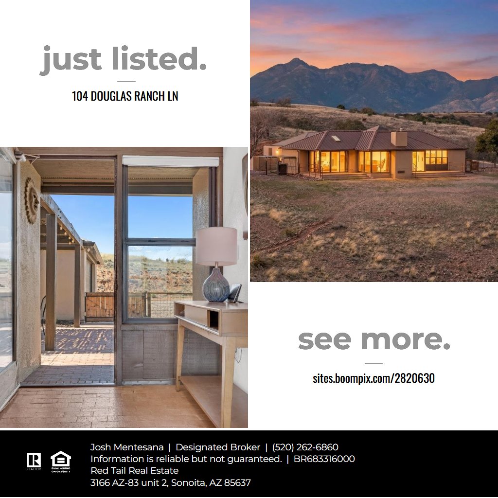 TURN-KEY INVESTMENT OPPORTUNITY: Step back in time at 104 Douglas Lane in Sonoita, a striking mid-century modern home designed by Tucson architect William H. Cook. Set on a private road with unobstructed views to the north and east, this thoughtfully designed residence features brick floors, vaulted ceilings, skylights, and dramatic floor-to-ceiling windows that flood the home with natural light. Modern conveniences blend seamlessly with timeless architecture, including remote-controlled electric window shades, gas heat, a gas fireplace insert, and a Murphy bed for flexible living. The property is well-equipped for rural living with a fenced yard, horse stables, corral, chicken coop, RV hookup, and a two-car garage with storage. Outdoor living is exceptional with a hot tub, outdoor shower, and expansive patio perfect for enjoying Sonoita’s dark skies and peaceful nights. Recent upgrades include a maintenance-free metal roof, new gutters and downspouts, new well pump, solar power system, and rainwater harvesting. Conveniently located near the Sonoita Crossroads, this fully furnished home offers privacy, character, and a rare opportunity to own a piece of architectural history in the heart of Arizona’s wine country.