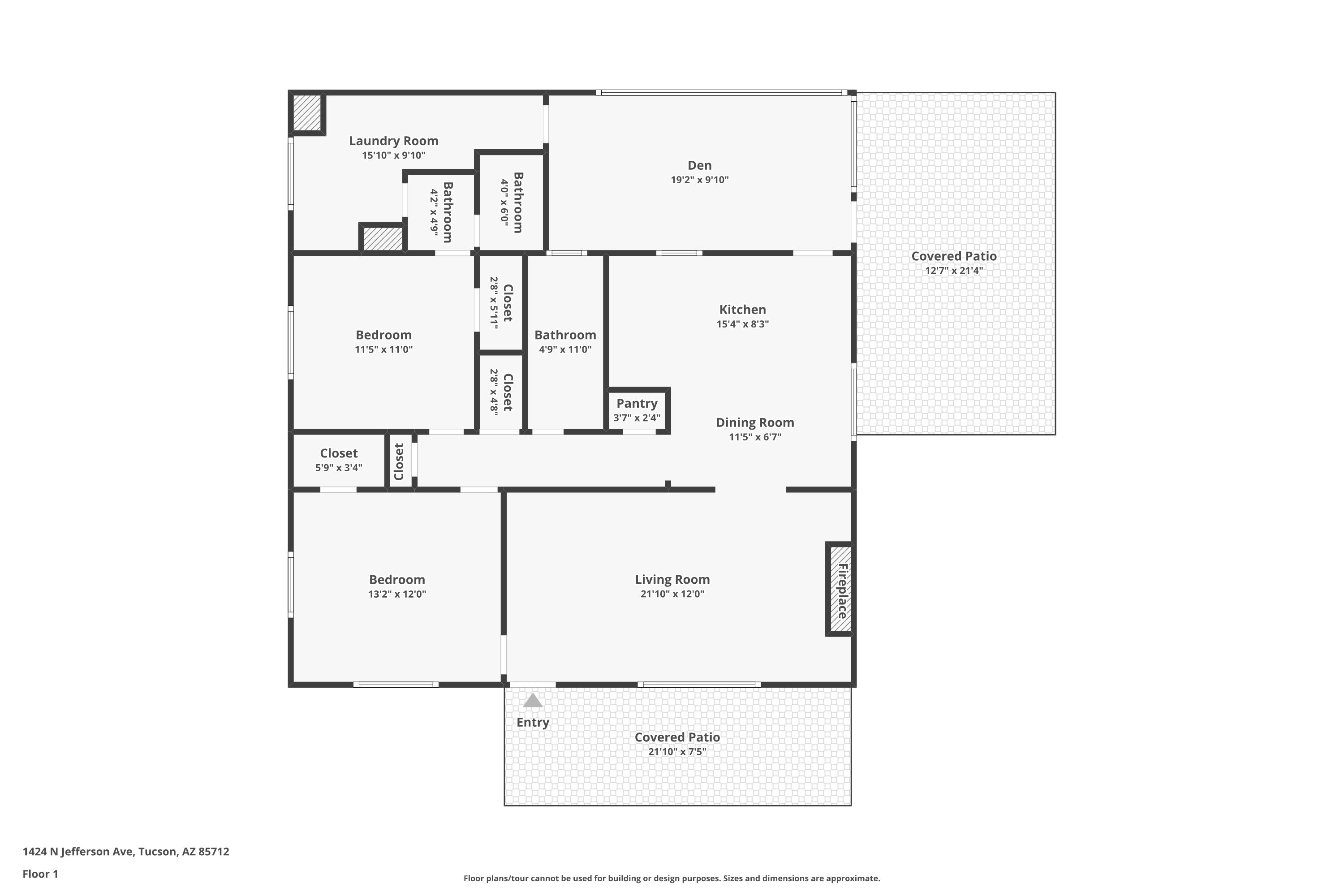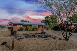 Meticulously cared for 1959 brick home, this little cottage in the desert offers 2 beds, 2 baths, and 1,208 sq ft of move-in ready charm. Step inside to a warm, inviting space with a cozy brick wood burning fireplace, abundant natural light, and designer touches throughout. The kitchen gleams with Atacama granite countertops and energy-efficient LG appliances installed in 2021/2022, hall bath showcases an elegant marble countertop. Major updates include a 2023 14 SEER Rheem HVAC, Mitsubishi mini-split, 2021 water heater, new main waterline, 2024 roof recoat, and alarm system. Please see the upgrades sheet for more listed improvements. The laundry room provides extra storage and additional square footage not included in the 1,208 sq ft.