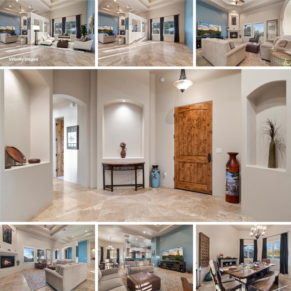 Tuscan-style luxury estate in exclusive Coyote Creek community situated on 2.24 acres. Entertainer's kitchen with granite countertops, custom cabinets, and high-end appliances. Spacious Owner suite with Jetted tub, walk in shower, and travertine tile accents. Expensive walk-in closet and access to patio and pool area with outdoor BBQ and fireplace. Additional features include 780-sqft guest house, 100x80 sf RV/workshop. Other amenities include a recreation center and equestrian center.