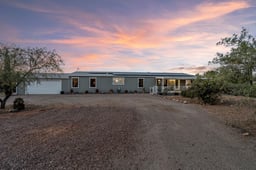 Enjoy stunning mountain views from this updated 4-bedroom, 2-bath home on a spacious 1-acre lot with mature trees and natural vegetation. The open floor plan offers comfortable living, while the updated kitchen features granite countertops, island, and newer appliances. Stylish wood-laminate flooring runs throughout. Split bedroom floor plan offers added privacy. Large walk-in pantry/mudroom just off the kitchen with private backyard access. Separate laundry room with its own exterior access adds convenience. Outside, you’ll find a storage shed, RV parking, and room for additional vehicles or hobbies, plus an extra-large 2-car garage. Relax on the extended front covered patio. Move-in ready with room to live, work, and enjoy the Arizona life!