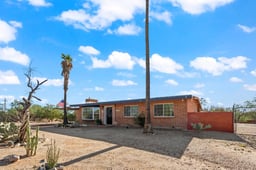 This 3-bedroom, 2-bathroom burnt adobe home in Oracle Heights Estates, Tucson, offers a blend of classic Southwestern charm, generous space, and a private outdoor oasis with mountain views. The walled, .9 acre corner lot provides great privacy and plenty of room to add a pool to the tiered backyard. This home is positioned on the lot to take advantage of the stunning Catalina Mountain Views.