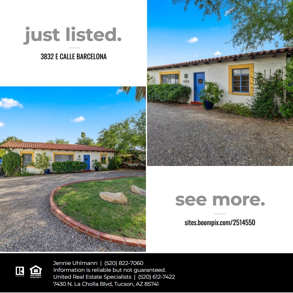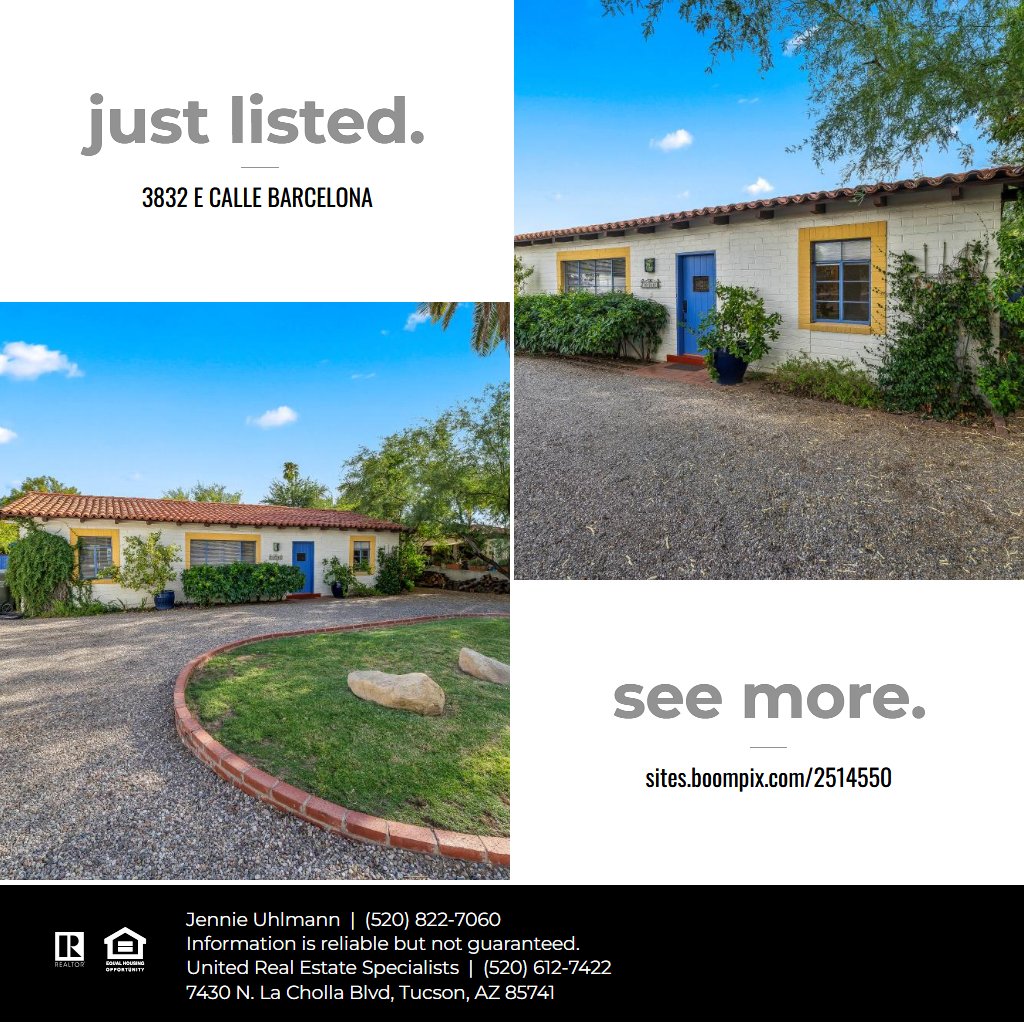 Charming Spanish Ranch featuring large lot, lush backyard, pool and guest house in historic El Montevideo! The main home has 3 bedrooms, 2 baths, concrete flooring, a large living room, wood-burning fireplace and beautiful sitting patio overlooking the pool. The 1 bedroom/1 bath guest features Saltillo tile, full kitchen, and storage. Mature landscaping includes Meyer lemon tree, flowering vines, lovely grass yard and an established garden bed. Inviting street view of beautiful Spanish tile roof and circular driveway. Separate entry for guest house, which has been used as a rental. This well-loved home and yard feels cozy and serene but with plenty of flexibility of space. Historic status may mean reduction in taxes, location is walking distance from shopping, dining, Reid Park and more.