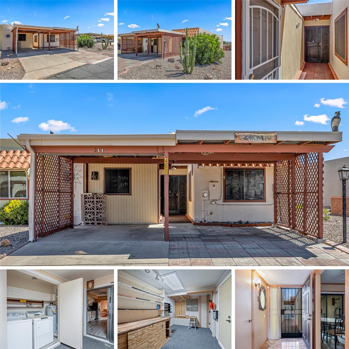 Range Price, seller will accept or counter offers between $199,000-$209,000. Beautifully maintained Green Valley townhouse offers comfort, efficiency, & thoughtful upgrades. Enjoy owned solar for energy savings & a stylishly updated kitchen featuring newer backsplash, sink, dishwasher, microwave, & refrigerator. The hot water heater has been recently replaced, adding peace of mind. Spacious great room with an electric fireplace creates a warm, inviting atmosphere, complemented by LVF & ceramic tile throughout. Additional highlights include a Vivant security system, two private ensuite bedrooms, & a workshop with laundry just off the kitchen, complete with newer washer/dryer. Relax in the Arizona room or entertain on the paver patio. As part of GVR, enjoy access to exceptional amenities.
