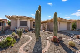 Uncompromising Views of MT Hopkins & MT Wrightson, AND golf course view, AND Lake views! Elevated just enough to enjoy all three views from your Great room, dining room kitchen, main bedroom and of course your covered-screened in patio! This amazing property of 2500 + SQFT has it all, tiled floors, large kitchen w/ solid surface counter-tops, center Island under cabinet lighting, newer stainless appliances, pull-out drawers, writing desk area. The den off the kitchen has charming built-ins perfect spot for morning TV. The Laundry-room has additional cabinetry and a pantry w/ pull out drawers. The 3rd bedroom is used as a hobby room and is flexible space for your needs. The main suite has exterior door to patio, built-in TV cabinet & fireplace!