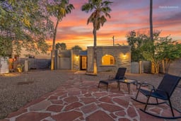 Walled oasis with custom gates, offering rare privacy with a compound-like sense of seclusion and security. Set in the heart of Midtown Tucson, this home captures the area's charm--close to everything, yet quietly tucked away in an amazing community with wonderful neighbors. Enjoy mountain views, birdsong, and desert breezes from the 2023 added Arizona room, enclosed with secure metal screening--ideal for pets, peaceful lounging, or even a safe outdoor sleeping space. Inside, artistic soul meets modern bones with a unique split bedroom layout, open living spaces perfect for entertaining, or gallery-style art, and a cozy Wells wood-burning fireplace. Thoughtful updates include: 2026 fresh interior paint, 2023 HVAC, reroof, & fully owned solar with net metering & auto gate w/ clicker!