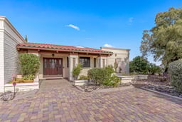 Poised against a breathtaking Catalina Foothills backdrop, this desert sanctuary epitomizes refined Southwestern living. Vaulted ceilings and arched alcoves highlight the spacious home, and expansive skylights bathe it soft, natural light. A striking hooded fireplace and walls of glass frame the panoramic mountain views. The entertainer's kitchen flows effortlessly to a sprawling enclosed side patio terrace for easy extended entertaining. The sprawling primary suite offers an enviable walk-in closet. The connected den/office can be closed off for a private guest room. This house has abundant clever storage, and feels like home the moment you walk in. From the terracotta roof to the lighted xeriscape, every detail celebrates Tucson's serene beauty and effortless indoor-outdoor living.