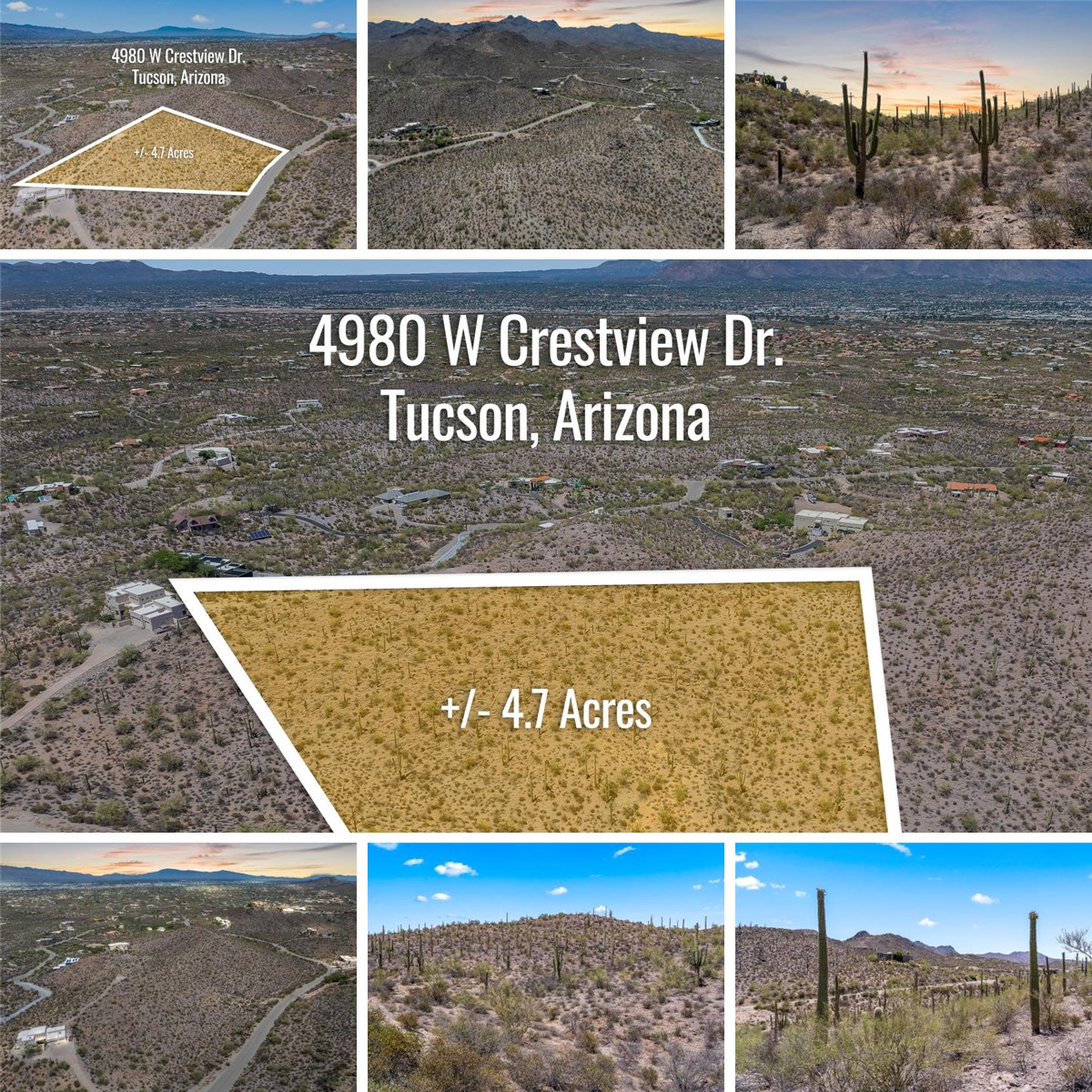 A rare opportunity to build your dream estate in Tucson’s exclusive Sundance Estates. This 4.7 acre saguaro studded parcel offers 360° views of the city and mountains from the top of the hill.