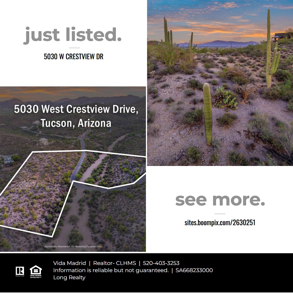 Experience stunning panoramic views of every mountain range and the sparkling Tucson city lights below alongside peace, quiet and privacy. Nestled in a small neighborhood of just 6 parcels- all homes built priced over $1million! This peaceful, private location offers plenty of space for a custom home, guest house, horses, or whatever you imagine. With two potential building sites guaranteeing spectacular mountain and city views, you can choose your ideal setting: the hillside near the wash, perfect for wildlife watching, or the gently sloped site ideal for a home, guest house, workshop or corral. SR zoning allows a wide variety of options- make sure to verify your desired uses with the county as part of your due diligence. This property offers paved access- Volunteer Road Maintenance Agreement in place to ensure road upkeep and has been recently surveyed/staked. Percolation test completed back on 1988 when purchased- was a pass but results may be obsolete at this time. A truly magnificent homesite.. come see it today!