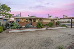 Truly gorgeous and full of charm, this unique mid-century home is an entertainer's dream. The deep, long, oversized diving pool features dual entry steps, can be heated for year-round use, and includes a spa—newly refilled and ready for magical nights out back. Multiple entertaining areas await: a gazebo, grill space, and lush greenery everywhere. A green thumb's paradise—plants can convey! No HOA. In addition to the RV gate with secure off-street parking for a 40+ft. rig, there is a half-circle driveway plus carport so there's plenty of space for your toys. Low, fixed-rate leased solar that won't escalate—far less than most electric bills. Inside, stunning décor with gorgeous, well-cared-for wood beam ceilings, unique lighting, and modern updates throughout.