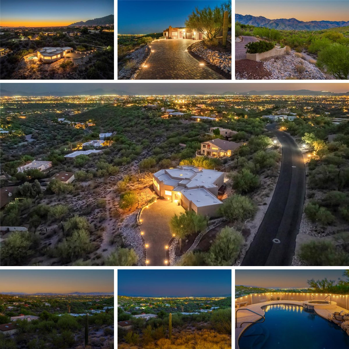 Prepare to be captivated by this custom-built, 3,656 sqft residence, a true sanctuary set on a private, one-acre lot in the heart of the Catalina Foothills. Seamlessly blending with the breathtaking Sonoran Desert landscape, this home offers unobstructed, panoramic views of the city lights and all mountain ranges from every vantage point. This single-level home offers an exceptional floor plan with no interior steps. Soaring 15' ceilings create a sense of grandeur and openness throughout the home. The property has four spacious bedrooms, three full baths, plus a versatile den that could easily serve as a fifth bedroom, providing ample space for family and guests. An extended balcony invites you to enjoy morning coffee or evening cocktails as you watch the city lights, mountain views, and sunsets over the Tucson valley. This home is located in a quiet, private community with low HOA dues and offers tranquility and convenience. This is more than just a home; it's a lifestyle. Don't miss the heated pool and spa! Schedule your private showing today!
