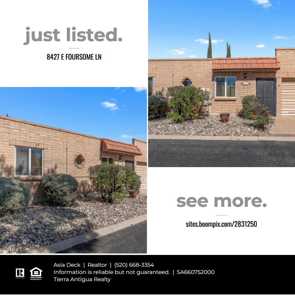 Welcome to 8427 E. Foursome Lane in the desirable Rolling Hills Villas! This charming 2 bedroom, 2 bathroom home offers a bright and open layout with a spacious living room perfect for relaxing or entertaining. Enjoy seamless indoor, outdoor living with three separate sliding glass doors leading from the private courtyard into the dining area, living room, and primary suite, filling the home with natural light and an airy feel. The extended length 1 car garage provides extra space for storage or a work area. Located near Rolling Hills Golf Course, shopping, and dining, this is low maintenance living in a prime location!